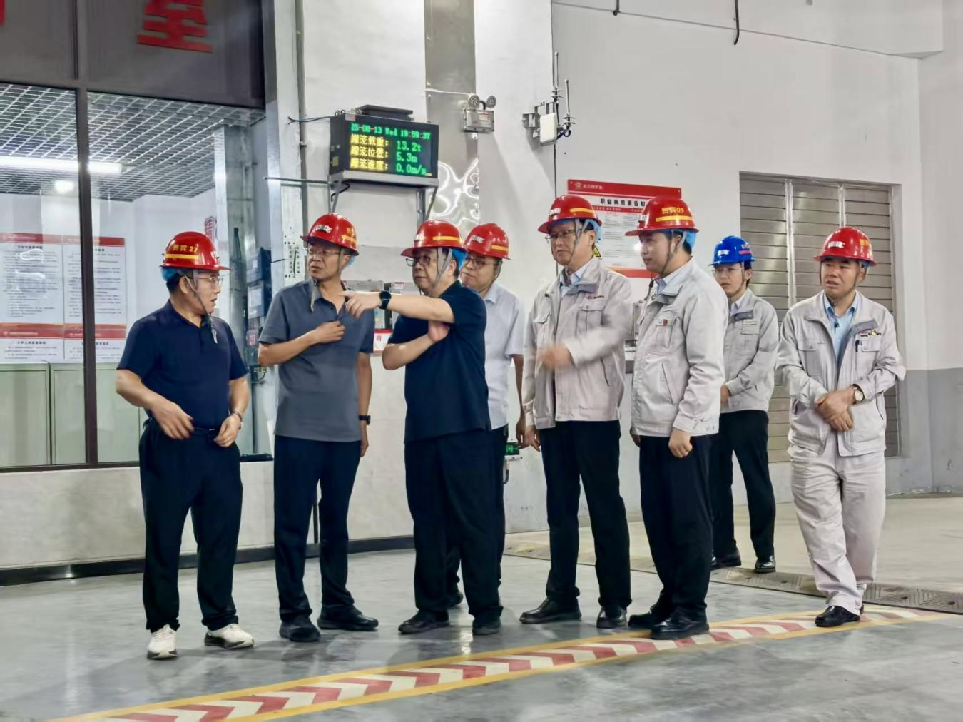 王棟一行深入工業廠區,重點察看趙石畔運營副立井提升系統的安全運行狀況,詳細了解現場設備參數、系統運維現狀,觀摩了實際操作流程,并針對隱患排查和優化升級等提出了指導意見。隨后,王棟一行深入30101綜采工作面,實地了解了采煤機、液壓支架、轉載機等設備安裝調試情況。